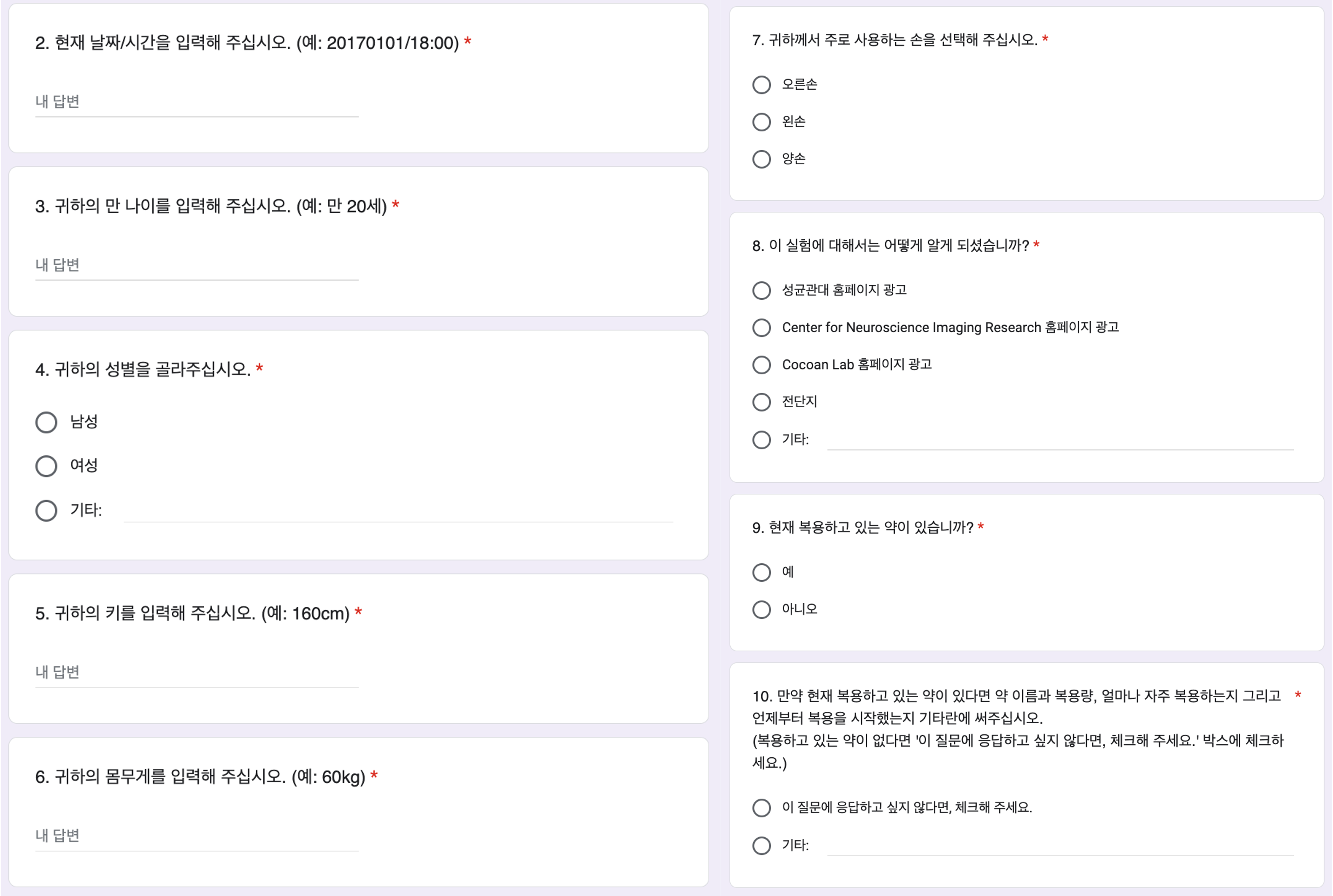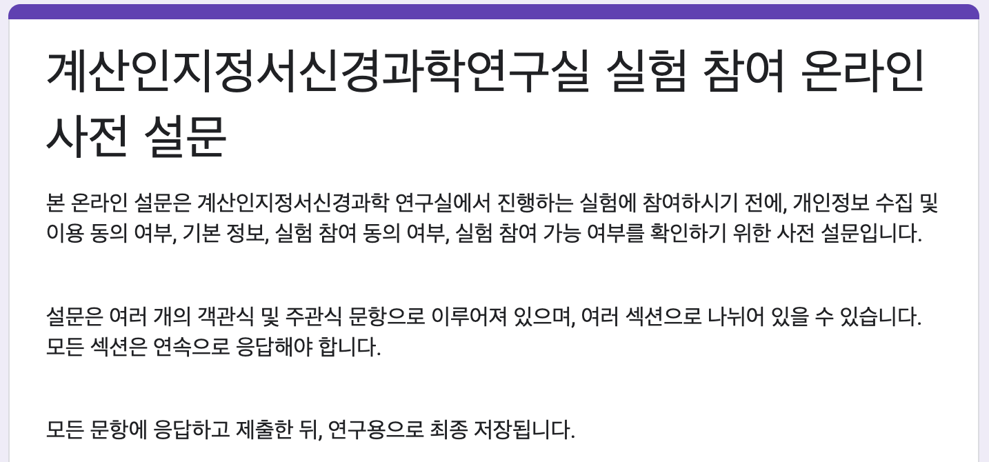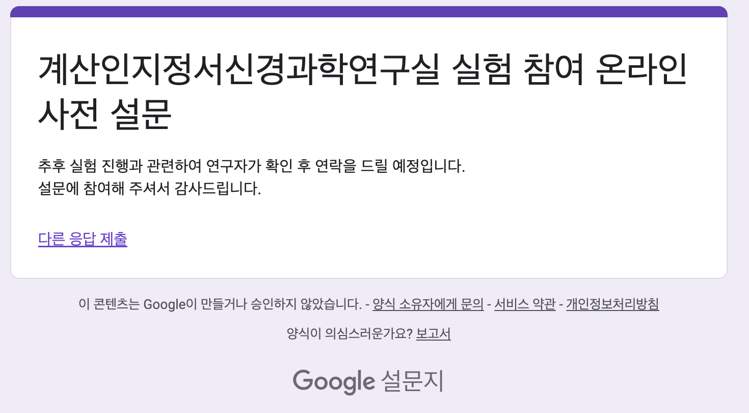 3. 설문 제출 후 실험자에게 연락해주세요.